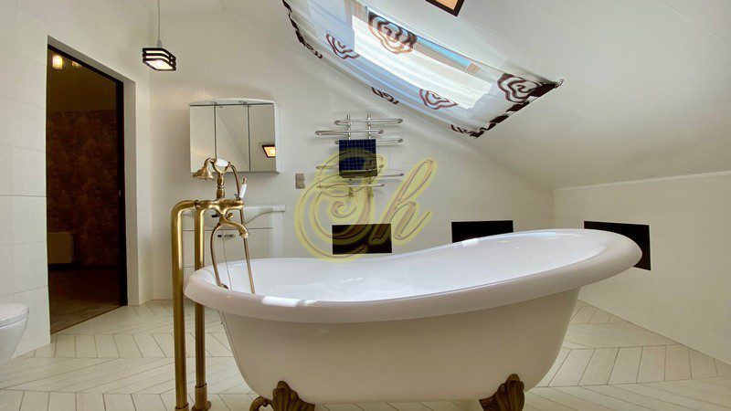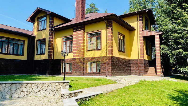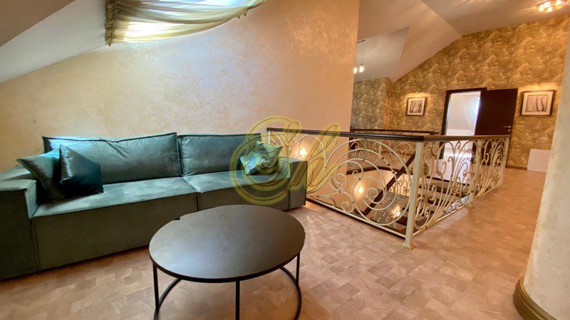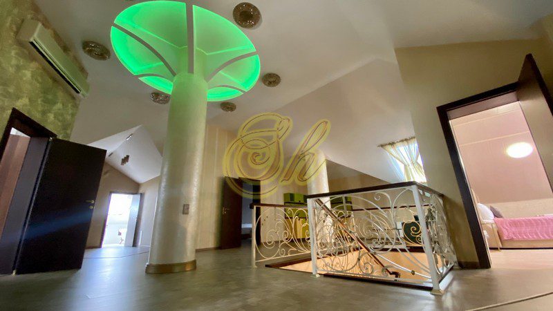 • 1 этаж: -банкетный каминный зал на 30 человек, -большой бассейн (8х14х2.5) с джакузи, -электрическая сауна, -кухня-столовая с выходом на террасу -камин. -4 спальни ( со своими с/у)