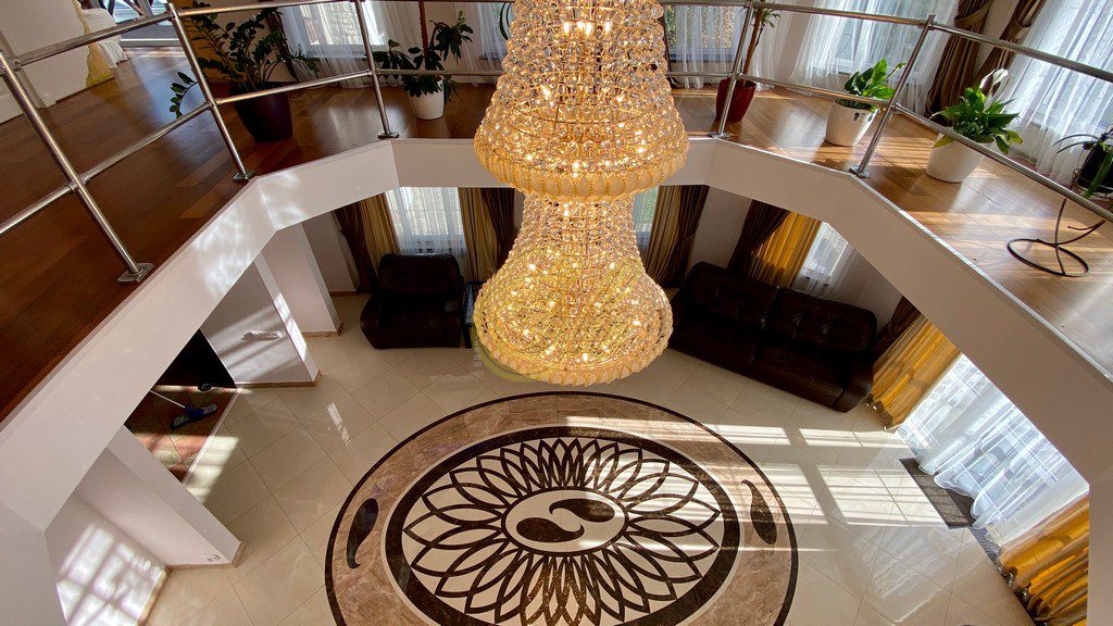 • кухня с оборудованием: духовой шкаф, посудомоечная машина, электроплита, ледогенератор; каминный зал,