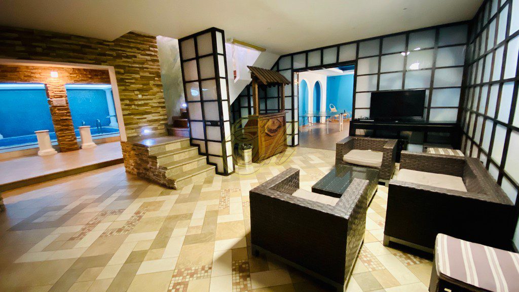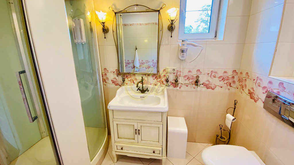 • 5 спальных комнат, 4 из которых имеют широкие двухспальные кровати, в 5-ой спальне 3-х спальный очень большой диван . Каждая комната оборудована санузлом с ванной.
