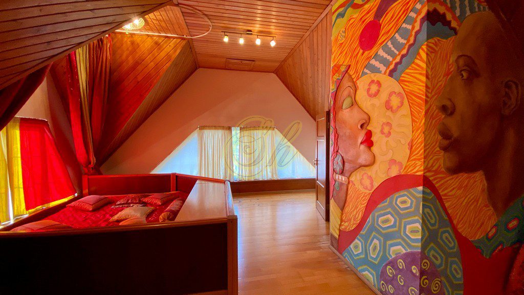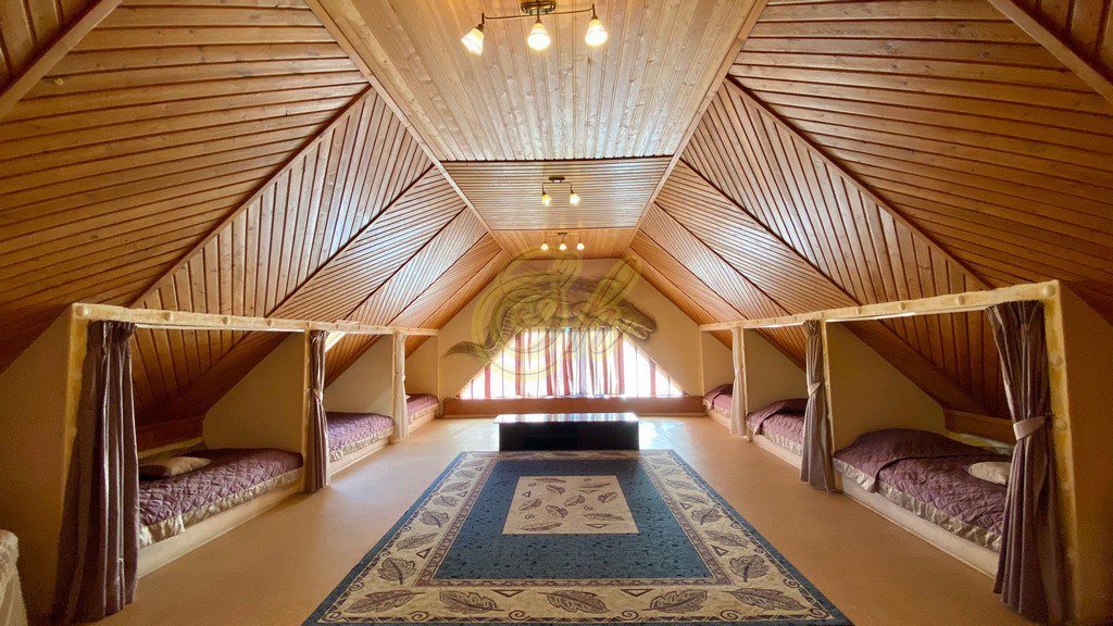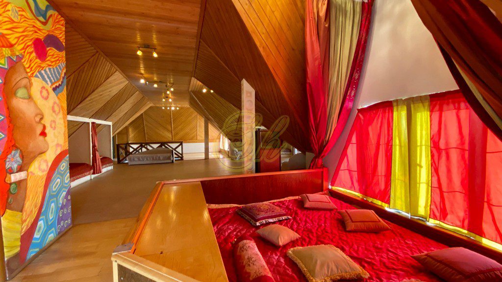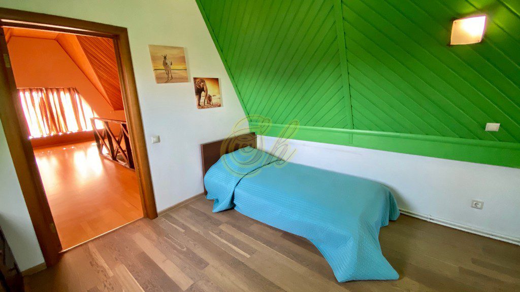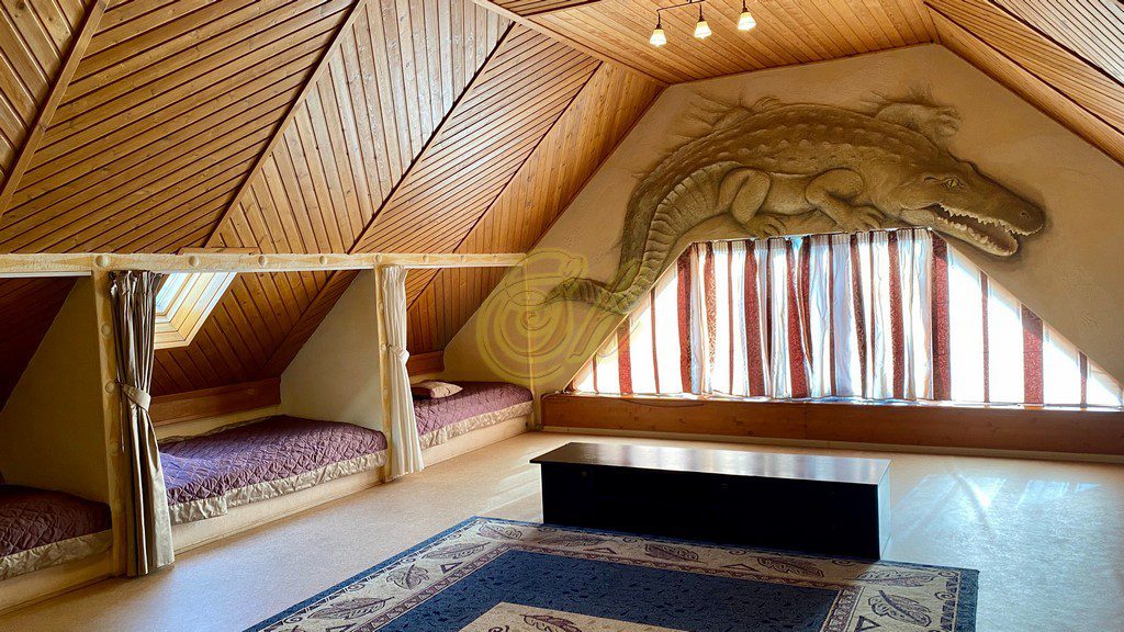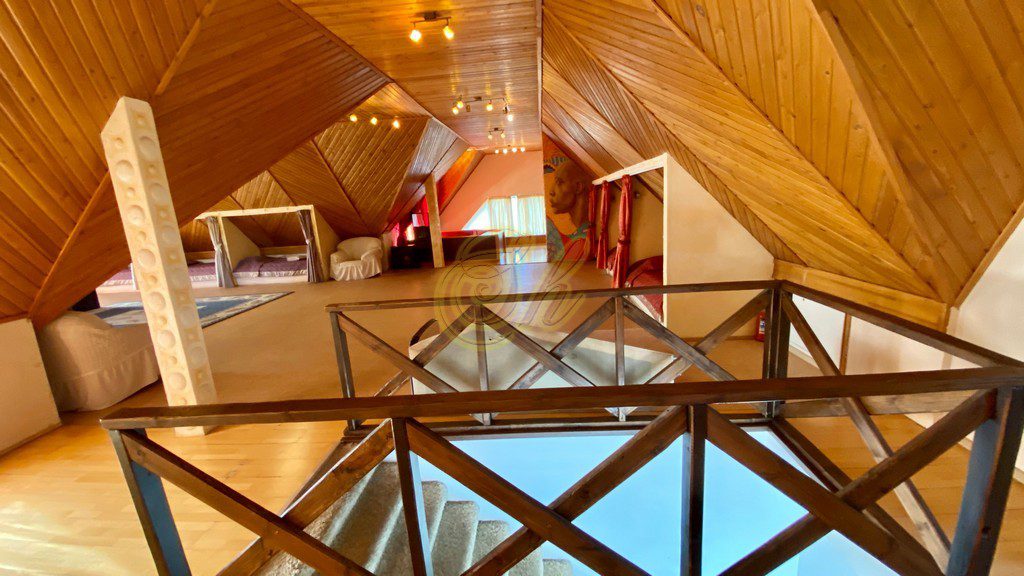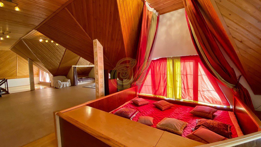 • на мансардном этаже 9 односпальных кроватей и будуар в виде пентакля 2,2Х3,5, где могут поместиться до 6 человек ( дети очень любят в нем спать). Есть дополнительные 4 дивана на этажах.