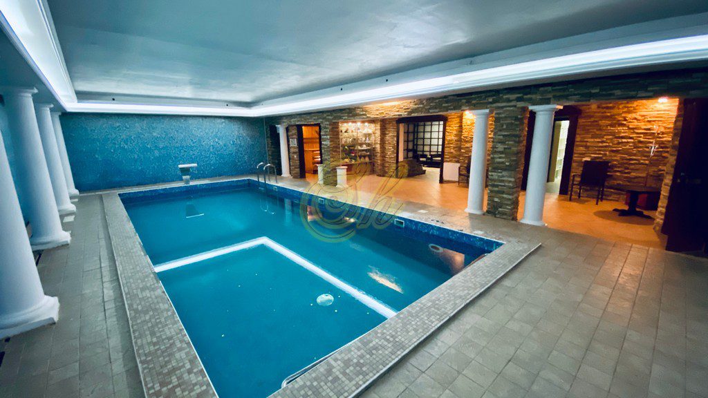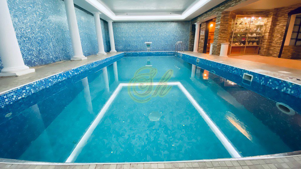 • бассейн с подогревом, гидромассажем, водопадом и гейзером 12х4 метра,