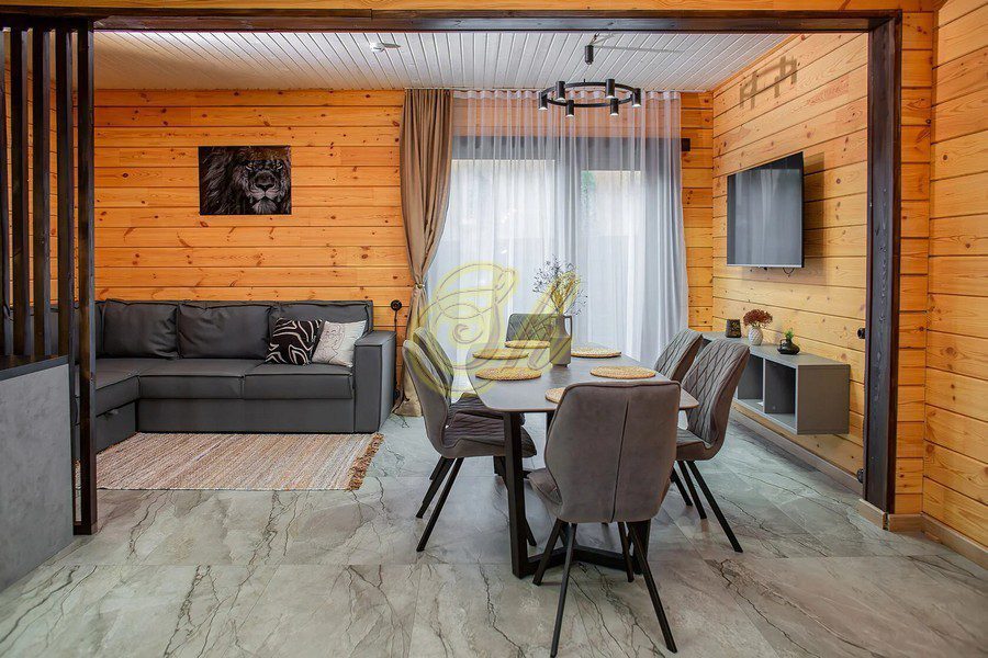 Комфортное размещение за банкетным столом до 8 человек. На ночь 8 человек ( всего 2 спальни).