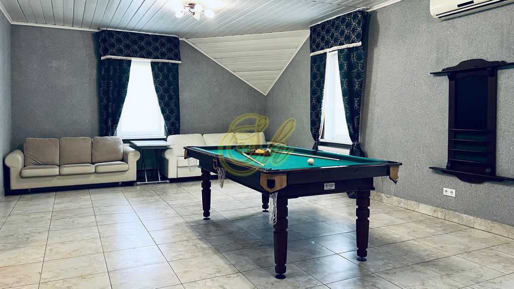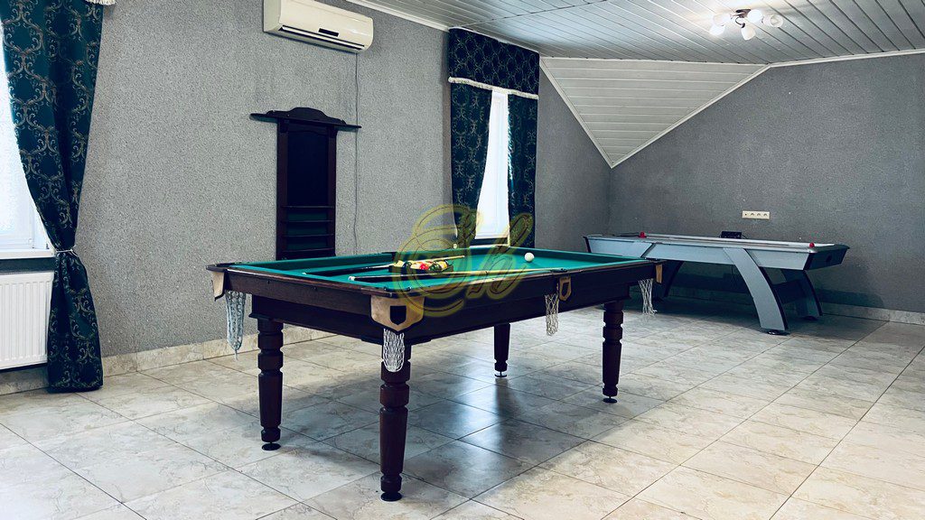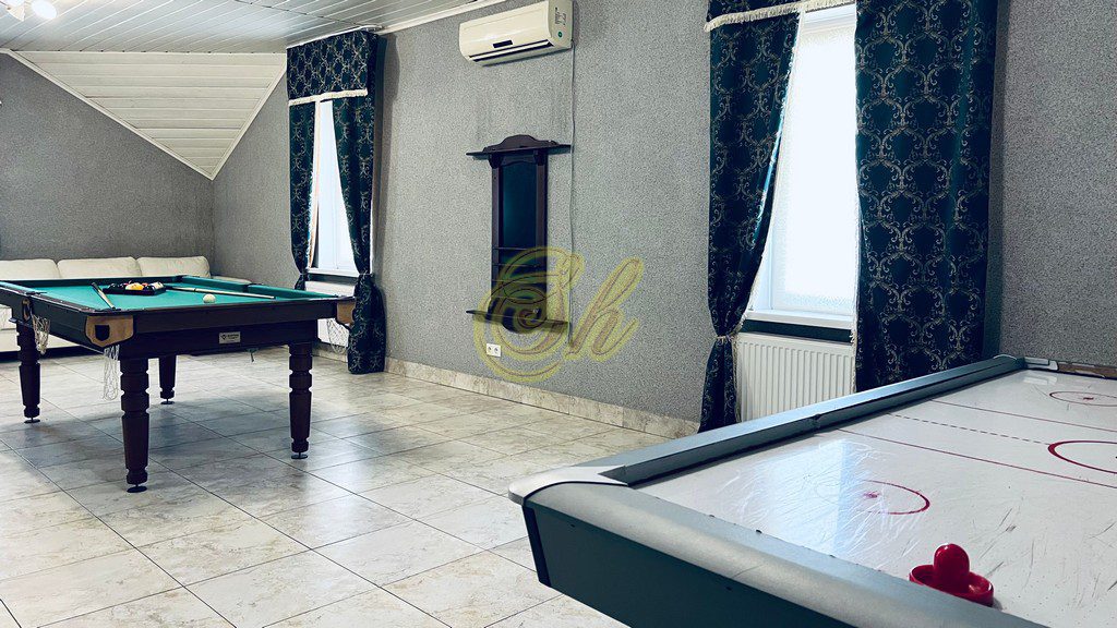 • огромная гостиная с бильярдом , аэрохоккеем зоной отдыха,