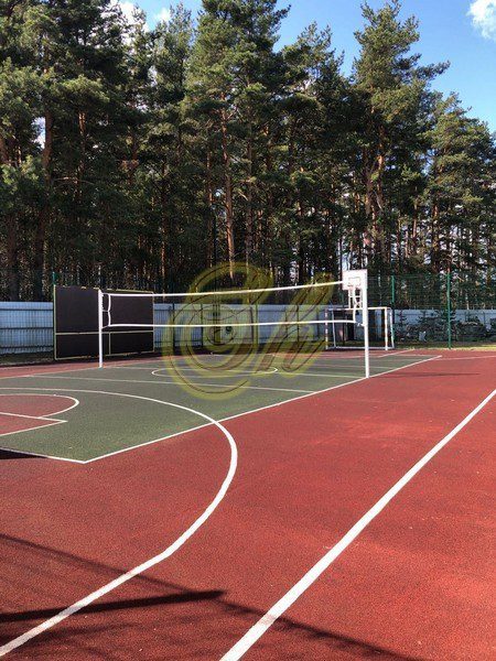 На территории коттеджного поселка прогулочные зоны, места для отдыха, спортивная площадка ( футбол, волейбол, баскетбол, теннис), пруд с живой рыбой.