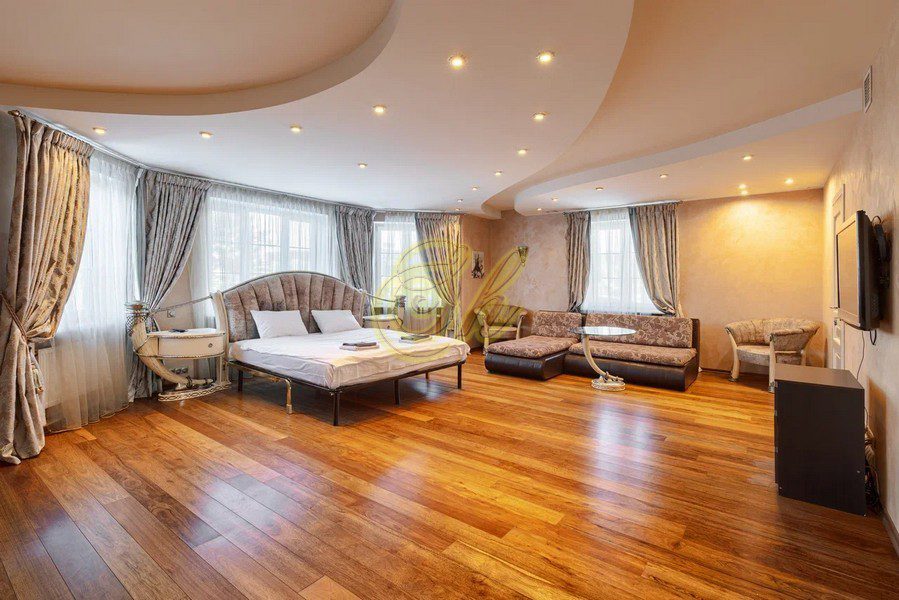 • главная спальня (60 м2) с гардеробной, со своим санузлом с джакузи и душевой кабиной.