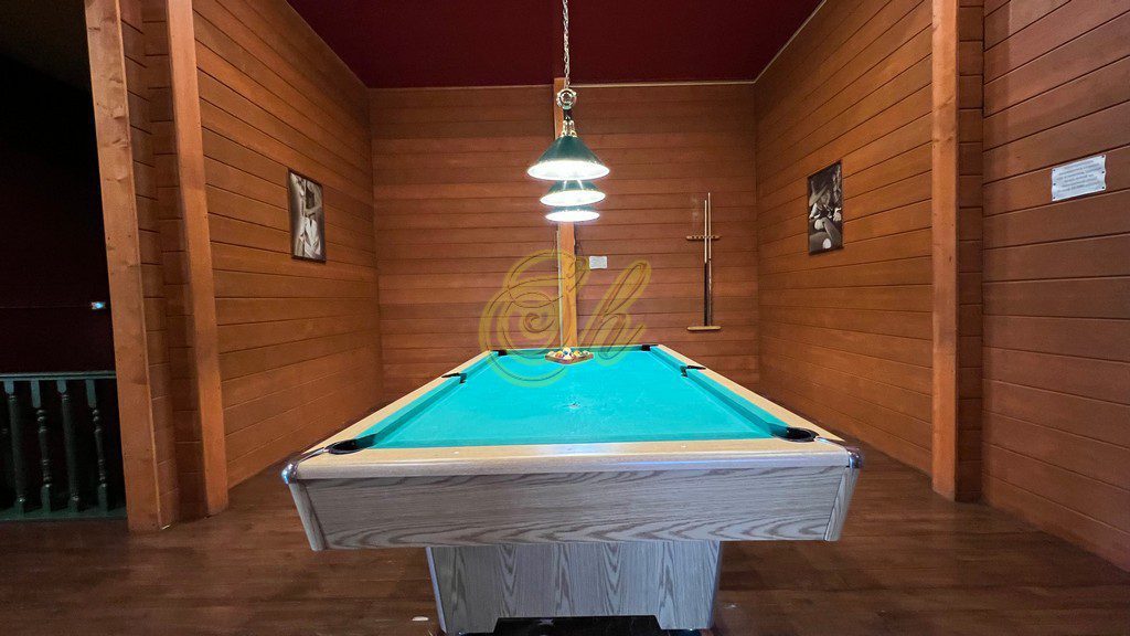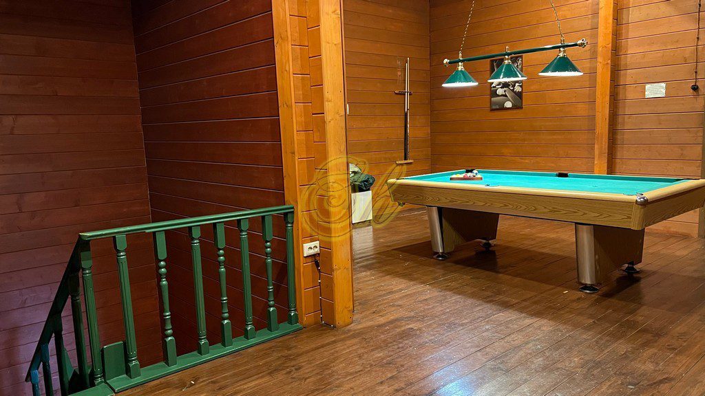 • зал 30 кв.м. с кожанами диванами, цветомузыкой, аэрохоккеем и большим телевизором (48″),