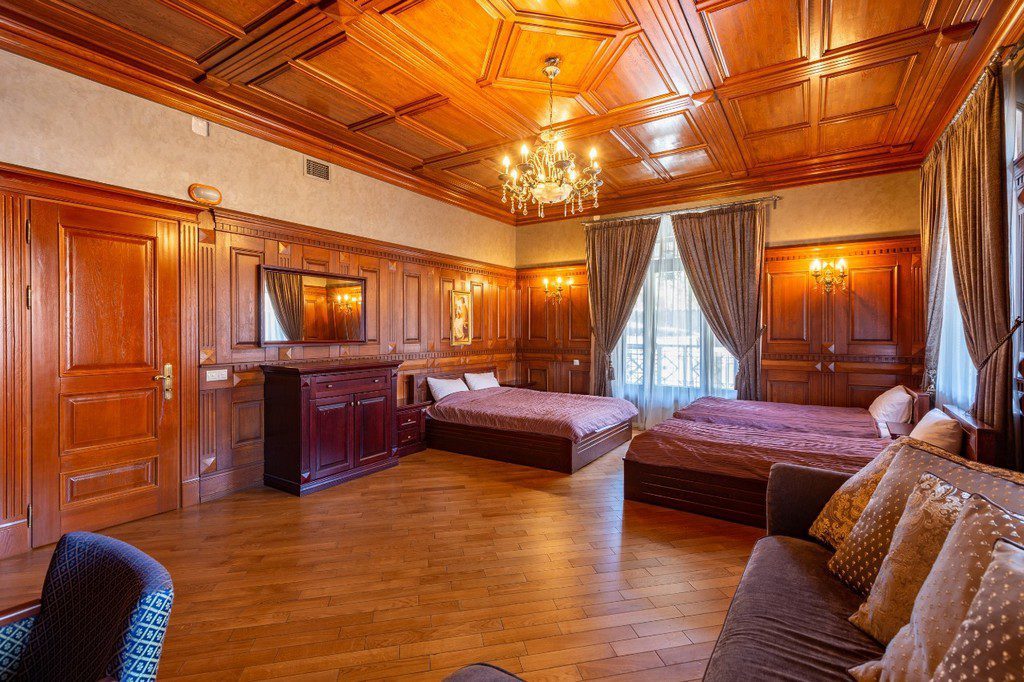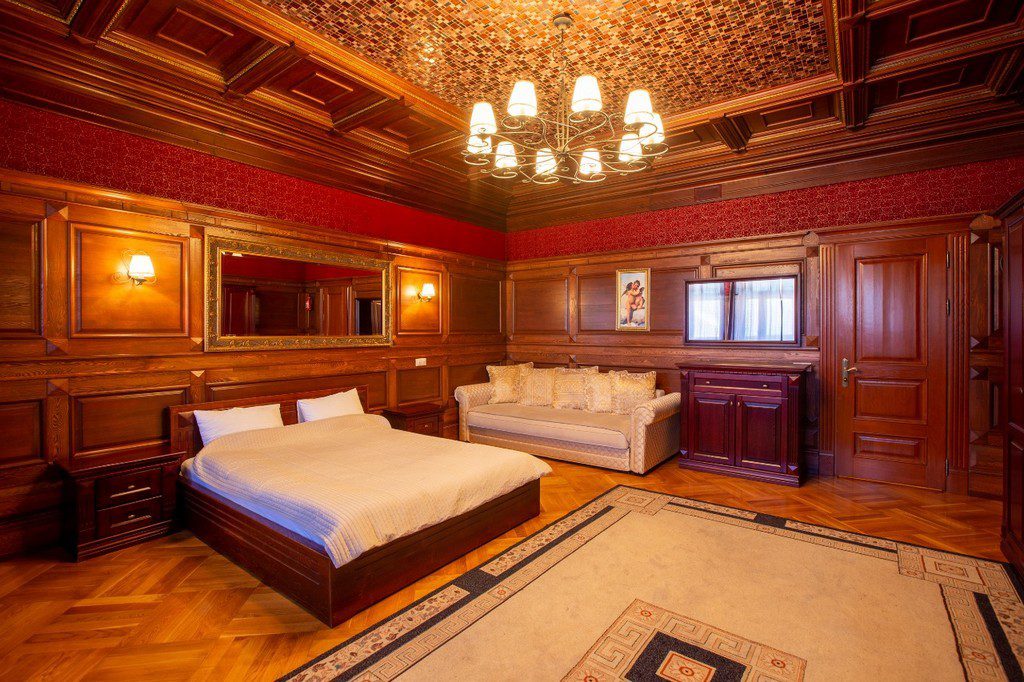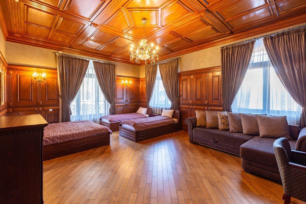 Комфортное размещение на банкет до 45 человек в каминном зале и до 60 человек в беседке. На ночь комфортно размещаются 31 человек. Всего 8 спален.