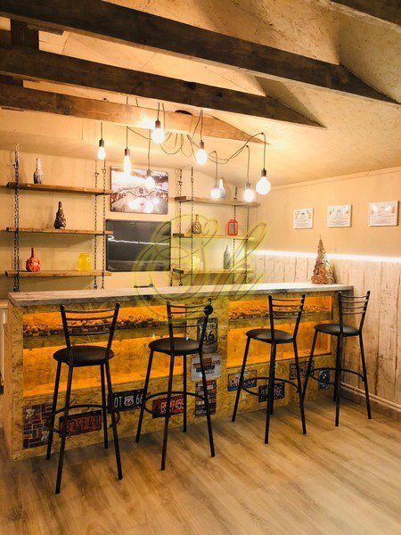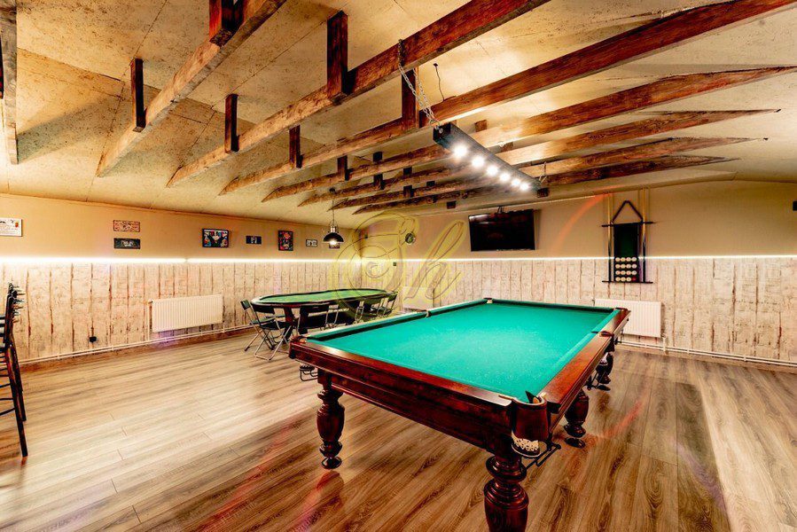 – игрового зала 80 кв. м., оформленного в стиле Лофт с бильярдным столом 10 футов для игры в русский бильярд, столом для игры в покер, большим диваном, барной стойкой и светомузыкой.